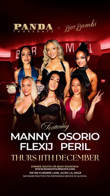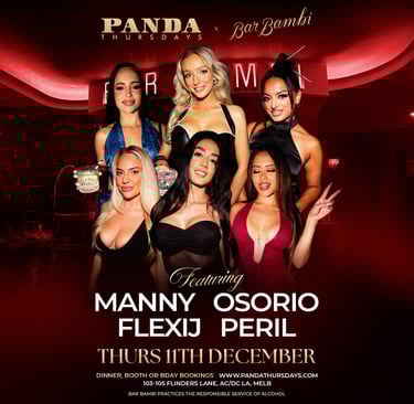 Welcome to Panda Thursdays – Melbourne's favorite Thursday night destination! We're proud to be Melbournes's premier hot spot for weekly Thursday entertainment, offering a haven for functions, birthday parties, nights out, and unforgettable after parties.